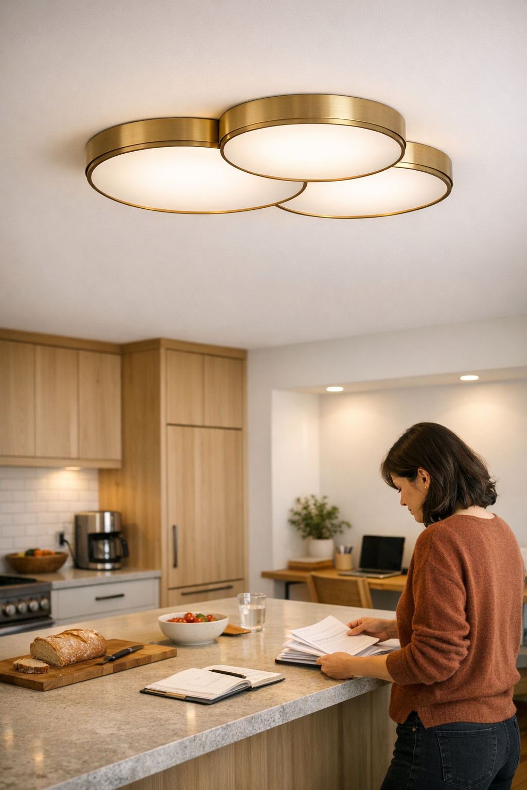 This friction doesn’t show up the first night the new fixture is installed. At first, a fresh ceiling light or grid looks tidy, even impressive. But after a week of late-night emails at the kitchen table and morning meal prep, the reality sets in. Patterns form: You keep shifting the mail into a bright rectangle. You avoid one corner where reading labels means squinting. The overhead fixture makes some surfaces look “fixed,” but in motion, those zones of light chop the space into areas that interrupt your routines.