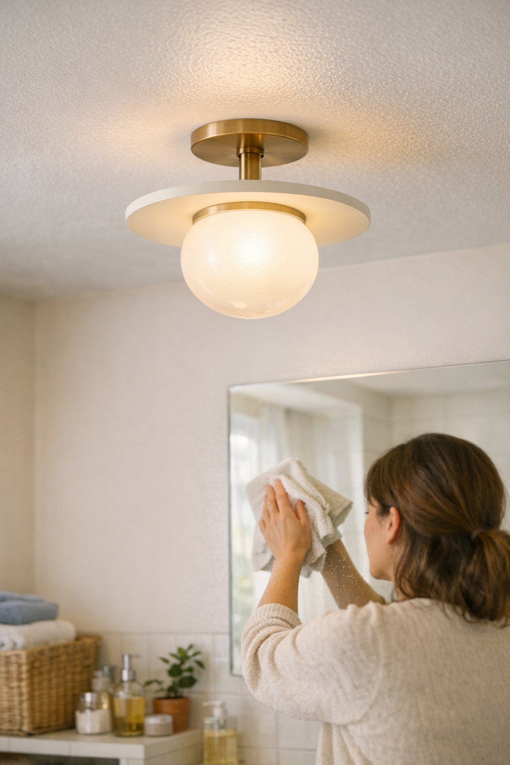 Don’t just look for a “damp-rated” fixture—prioritize models that mention venting, airflow, or anti-condensation design. Damp-rating alone only means the components won’t shorten out; it says nothing about light quality months after repeated steamy use. Fixtures that exchange air inside the cover, or allow residue to escape, protect the clarity that made the room look good to begin with. Always judge them by what happens after dozens of showers and loads of laundry, not in the dry air of a showroom.