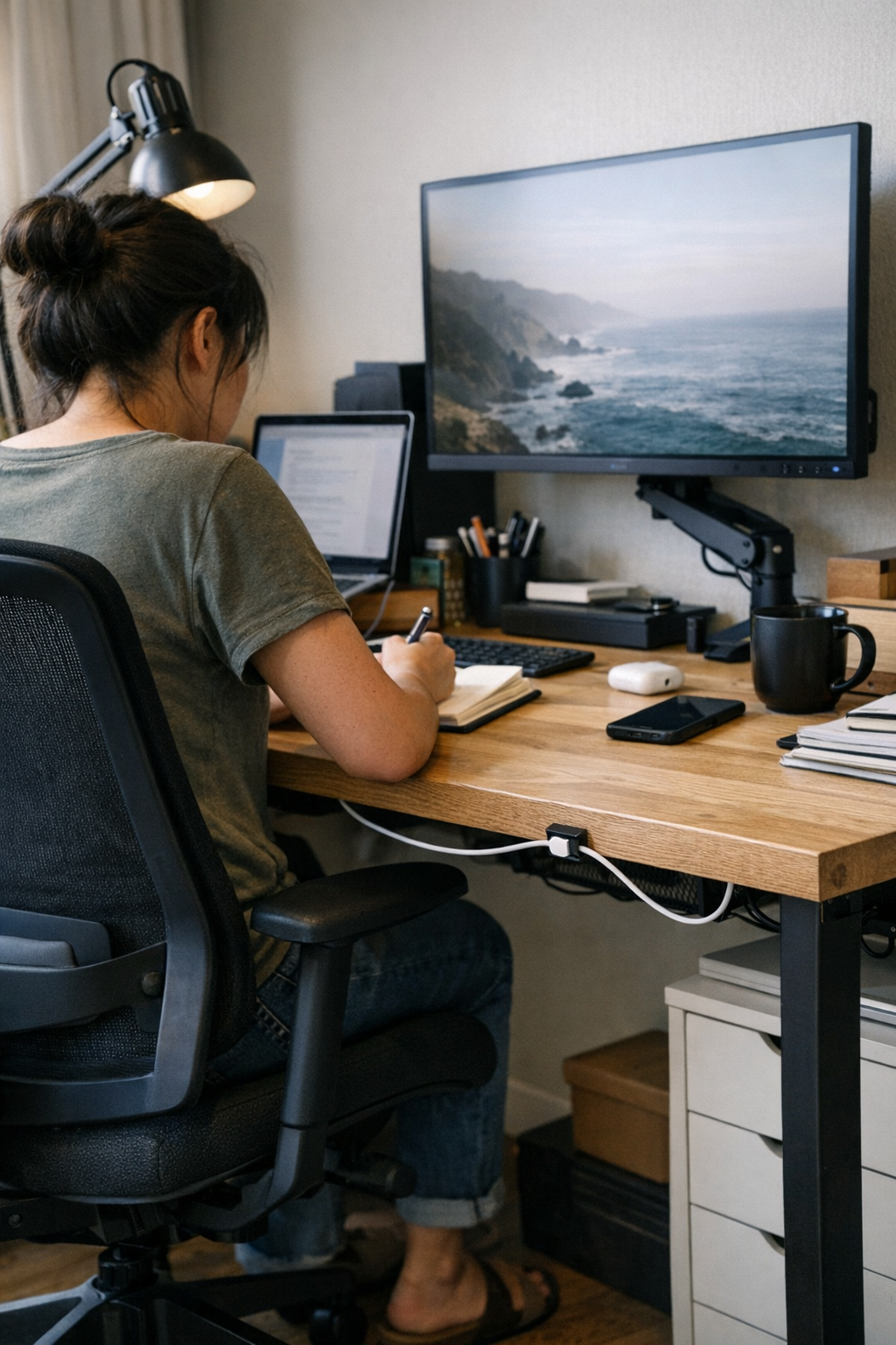 Minimal never means invisible at the price of comfort. The small, visible shift—a light dropped to the right level, a cable tucked clean but not buried—changes the room without ever getting in your way again. Most routines don’t need perfection; they need light that moves with them. That’s the difference between “perfect look” and real support.
