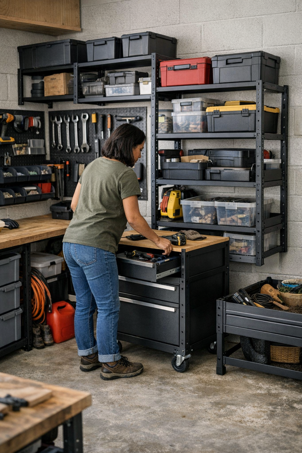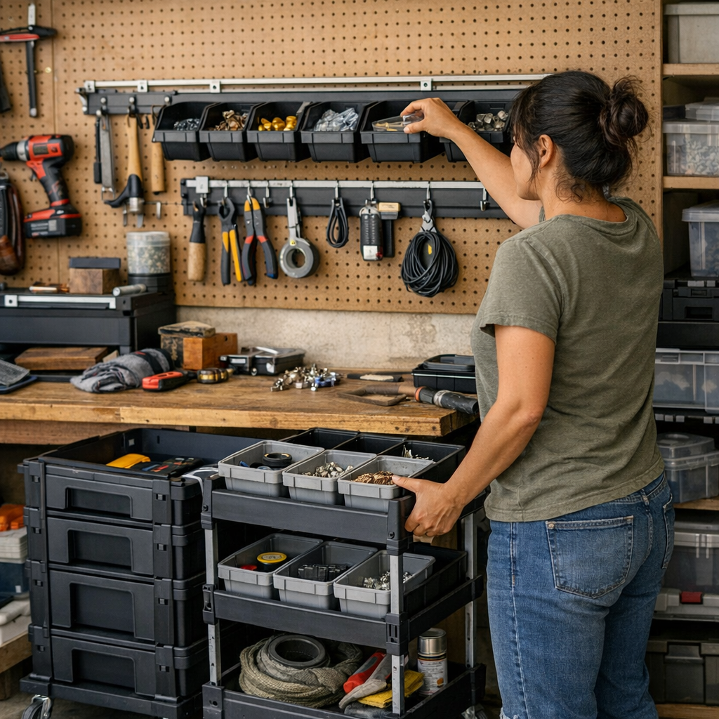 Imagine it’s 8:30 PM and you’re halfway through swapping hardware on a bench. The mobile cart, meant for convenience, now blocks the aisle because everything temporarily lands there during frantic moments. Hooks on the wall hold what’s in progress, but start to cluster, hiding must-have tools under layers of what’s “mid-project.” By cleanup, the once-clear bench is a patchwork: drill here, pliers there, tape measure across the bins, and a slow, backward puzzle to figure out where each piece belongs. Most “modular” layouts fail at this stage—not because of lack of storage, but because every open surface or oversized bin quietly attracts overflow and breaks the rhythm of return.