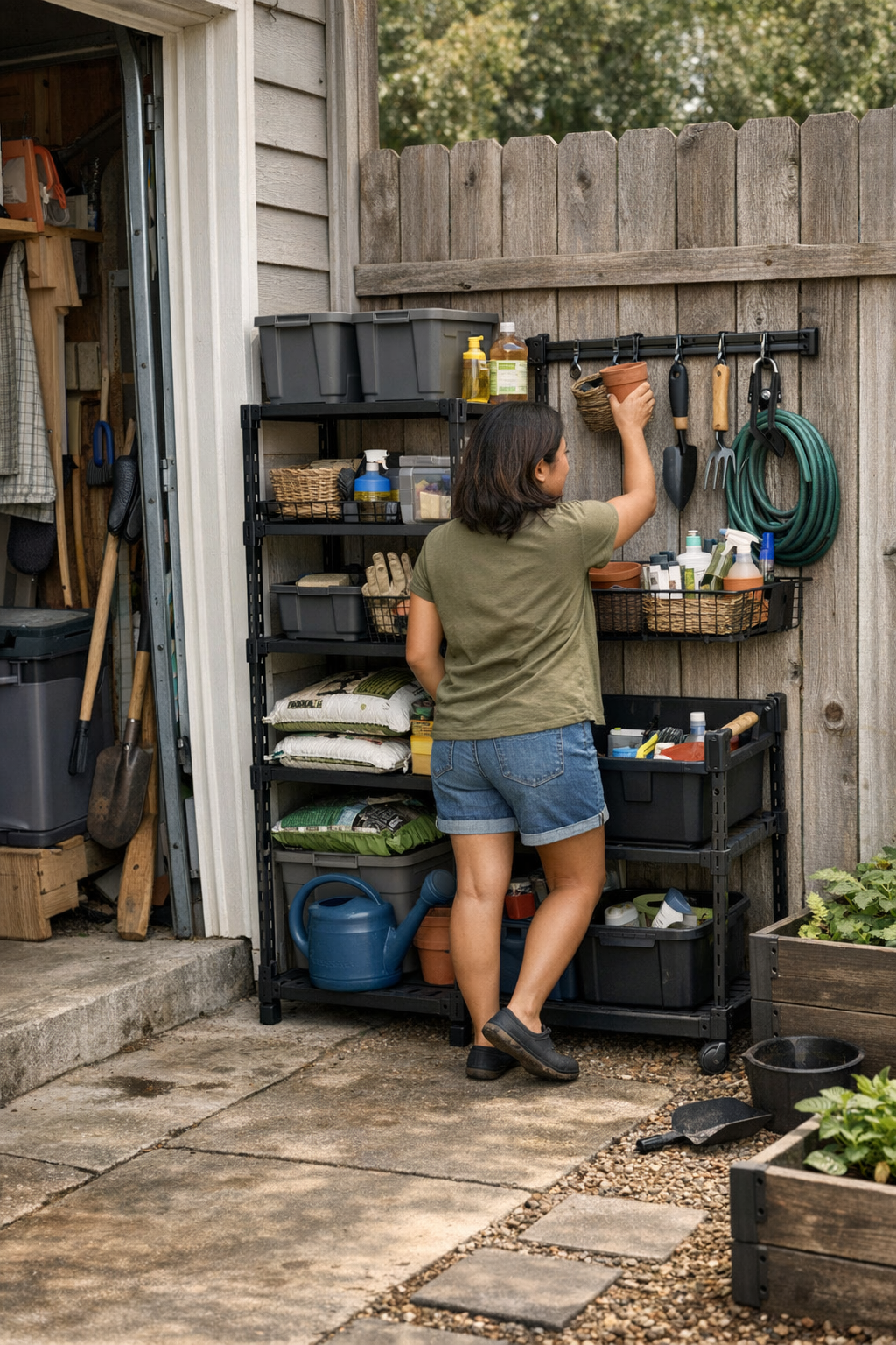 Functional outdoor organization isn’t hidden, it’s harmonious: the side yard, the fence line, the garage threshold—all work together, not against your daily paths. The right setup earns its keep by keeping movement clear and reset simple, no matter how many times you use the area. When your path stays open—and storage quietly stays aligned—you stop fighting the corner, and your space starts making sense for how you actually live outside.