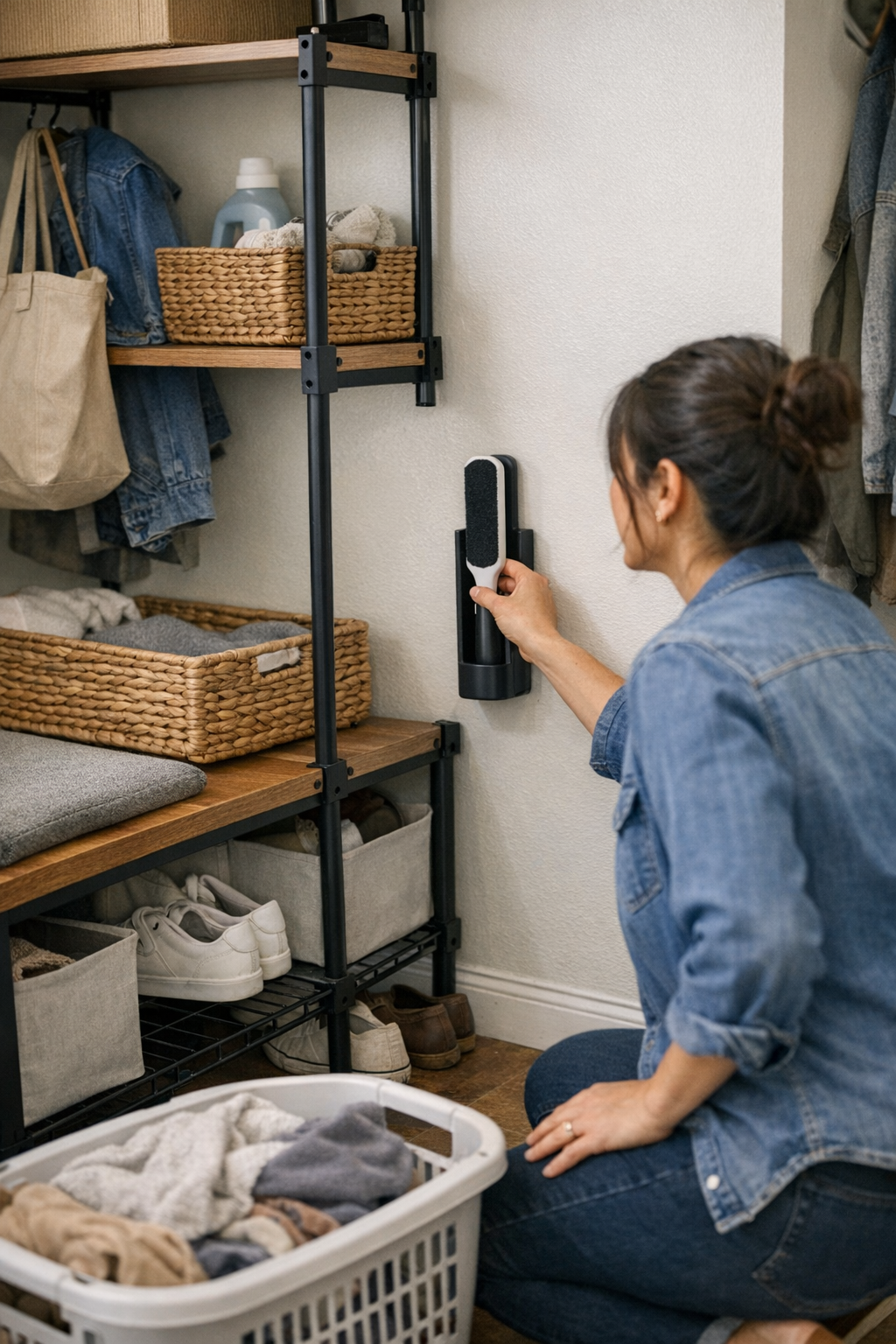 If your lint brush keeps disappearing, it’s not forgetfulness—it’s your entryway setup breaking down right where daily routines hinge. At first, it’s a small interruption: you reach for the lint brush and it isn’t there. But in a high-traffic threshold—where laundry baskets, bags, and shoes pile up—this single missing tool signals a larger problem. Visual order lasts until actual living starts. As soon as the morning shuffle begins, neatness gives way to drift: the brush slips behind a bag, gets wedged under the bench, or ends up hidden after one distracted reset. Each absence wears down your default reset—turning a two-minute filter clean into a slow, uncertain hunt at exactly the wrong time.