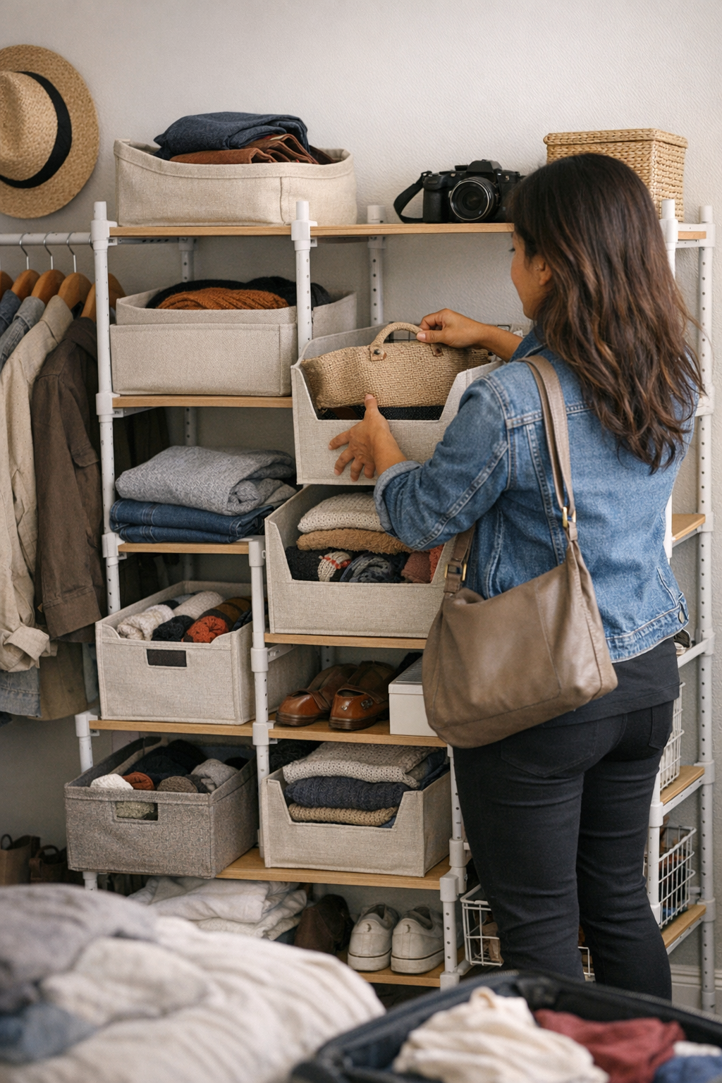 The best closet stays steady—even when you’re running on empty. A smarter storage setup isn’t about flawless alignment. It’s about designing for your tiredest self: clear categories, open returns, and no “hidden” zones that trap the things you use most. Consider swapping lidded, deep bins for open-front, shallow ones at arm’s reach—no more stacking three heavy bins to get at a scarf. Drop in a simple divider: suddenly, folded pants don’t drift into T-shirts, and what goes where is unmistakable, even for a distracted mind.