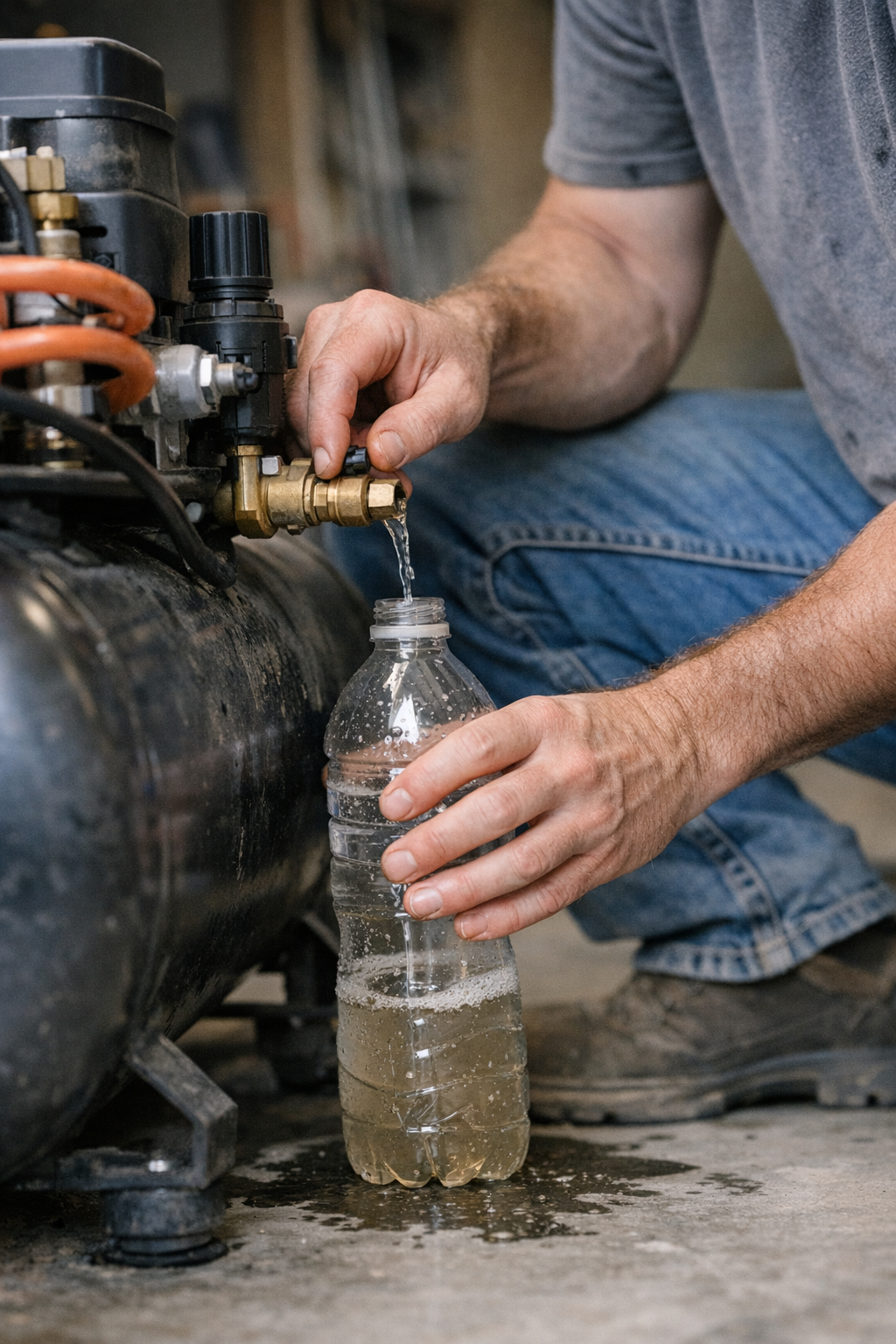 Practical tip: Attach a clear plastic bottle under your drain valve to collect condensation. Seeing real water accumulate is a constant reminder to keep that valve open. It’s easy to ignore a closed valve; it’s impossible to ignore a filling bottle.