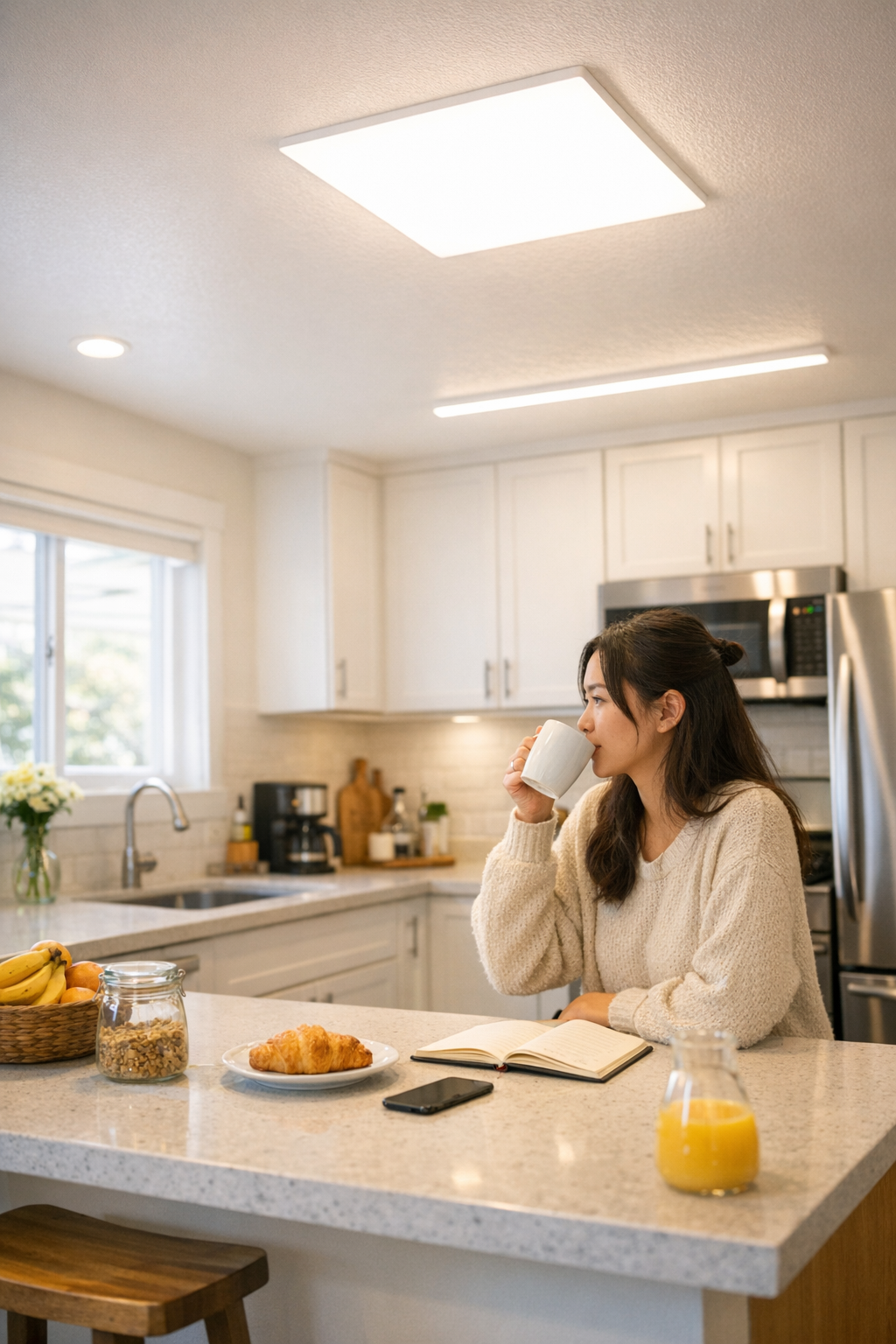 Some mornings in this house could feel like walking into the glare of midday sun—harsh, jarring, and unavoidable. The moment I left the bedroom, the old kitchen lighting greeted me like a spotlight, casting sharp reflections on the countertops and bouncing uncaring brightness off every reflective surface. I’d find myself squinting as I hunted for the kettle, the flashes hitting the kitchen tiles and slicing straight through the quiet before the day even began.