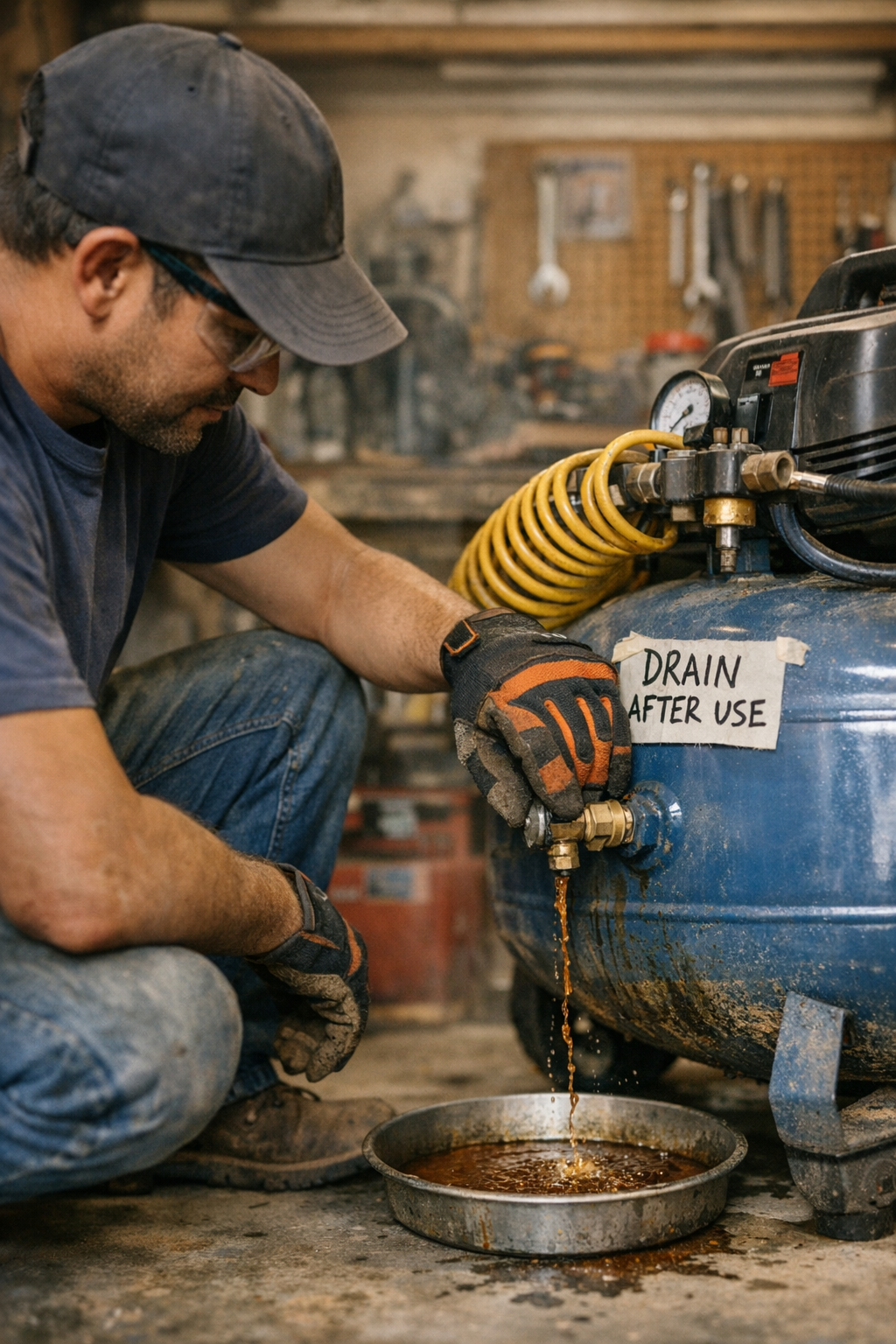 That experience taught me the critical importance of accessibility: placing the tank so the drain valve is easy to reach is the best preventive measure. In many setups, the drain is awkwardly positioned underneath or on the rear, which invites procrastination. By moving mine to a more convenient spot near where I coil my air hose, draining became a natural part of the shutdown routine.
